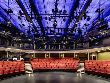 Thrust stage theatre in renovated historic building.